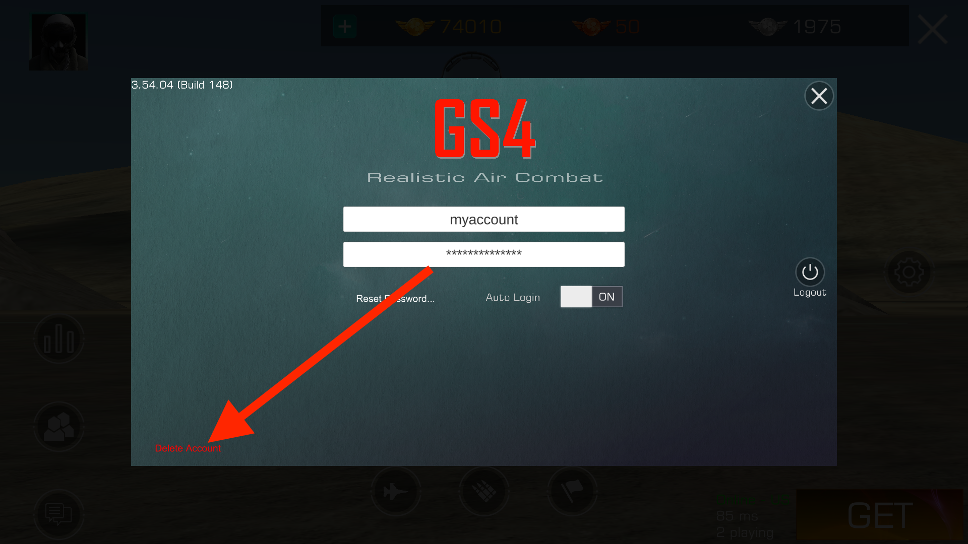 How to delete game account (GS4) Step 1: Select your profile on the top left of the screen Step 2: Select the “Account” button Step 3: Select “Delete” button at the bottom left of the Account window Step 4: Select “YES” to confirm
